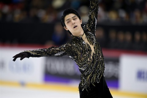 | Le Japonais Yuzuru Hanyu au cours de son programme libre du Grand Prix d'Helsinki de patinage artistique, le 4 novembre. |