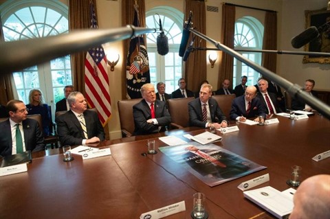 | Patrick Shanahan (à la gauche de Donald Trump) lors d'un conseil des ministres le 2 janvier à la Maison Blanche. |