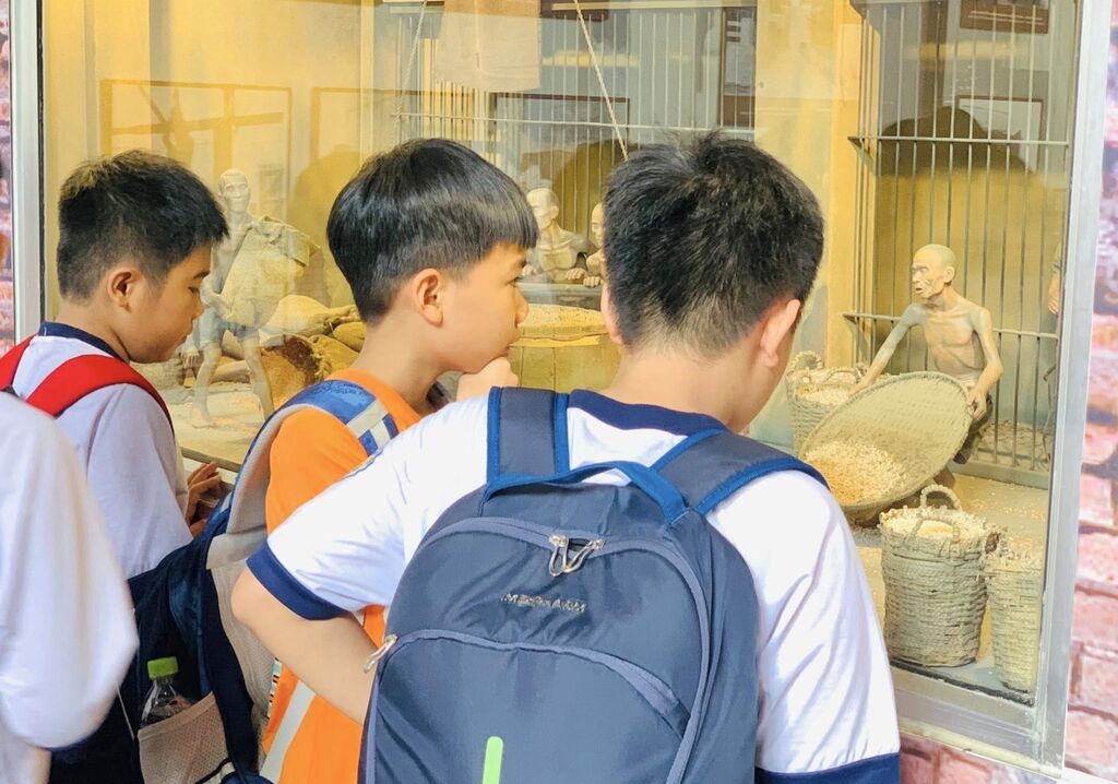 | Des élèves s'initient à l'autoguide lors de leur visite du site commémoratif du président Tôn Duc Thang dans la commune de My Hoa Hung, province d’An Giang (Sud). |
