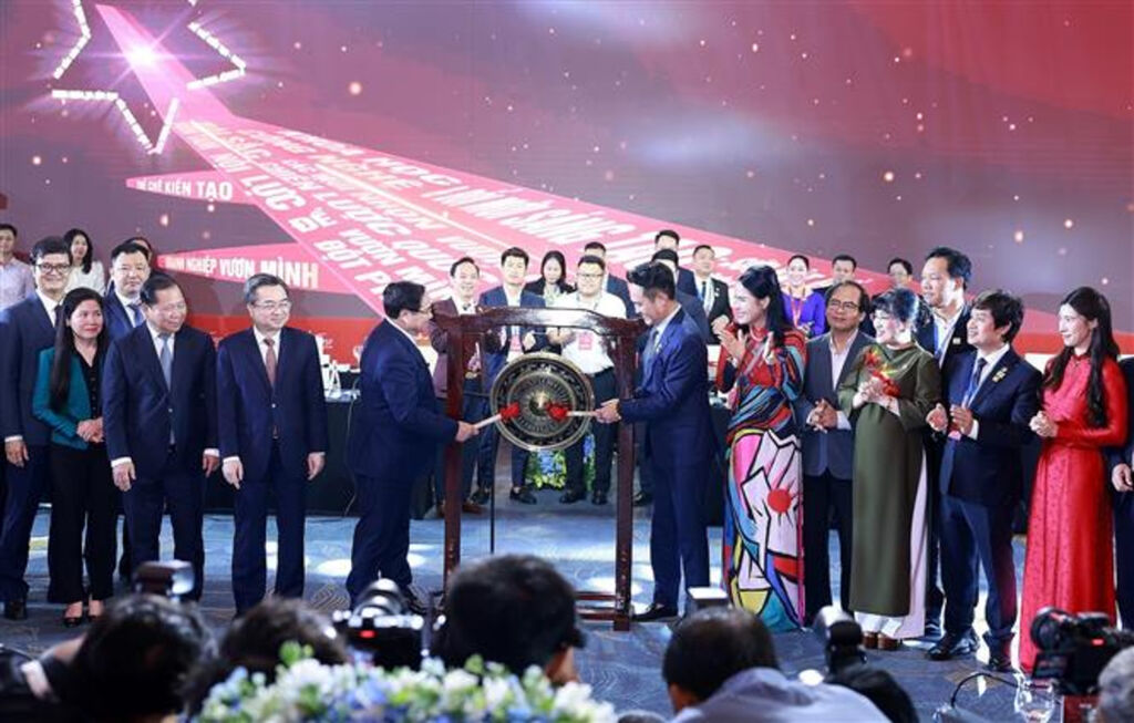 | Le Premier ministre Pham Minh Chinh préside la cérémonie de lancement d'une nouvelle phase de développement lors du Forum du secteur privé du Vietnam (VPSF) 2025. |