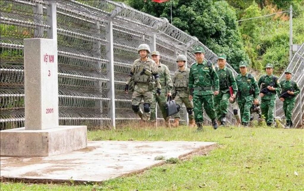 | Les gardes-frontières de la province de Diên Biên et celles de la zone Meng Zi (Chine) mènent une patrouille bilatérale. |
