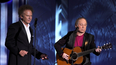 | Arthur Garfunkel (gauche) et Paul Simon, le 10 juin 2010 à Culver City, en Californie. |