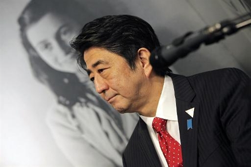 | Le Premier ministre japonais Shinzo Abe au Musée Anne Franck à Amsterdam, le 23 mars. Photo : AFP/VNA/CVN |