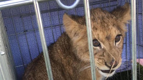 "Aujourd'hui (dimanche 7 octobre) nous avons reçu un message assez extraordinaire: un témoin a trouvé un petit lion dans une cage dans un pré'", a indiqué la police locale sur sa page Facebook. "Quand nous sommes arrivés sur place, nous avons trouvé un lionceau en cage. Il semblait avoir été abandonné", ont ajouté les forces de l'ordre, estimant l'âge du félin à quatre mois environ.