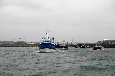 | Des bateaux de pêche au large de l'île de Jersey, en mai. |