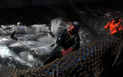 | Prises de thons par des pêcheurs au Sud de l'Espagne, le 21 mai 2015. |
