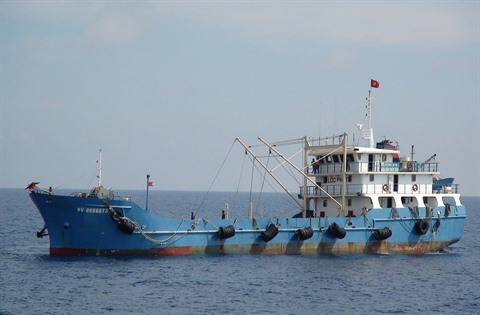| Un bateau de pêche du Vietnam en activité |