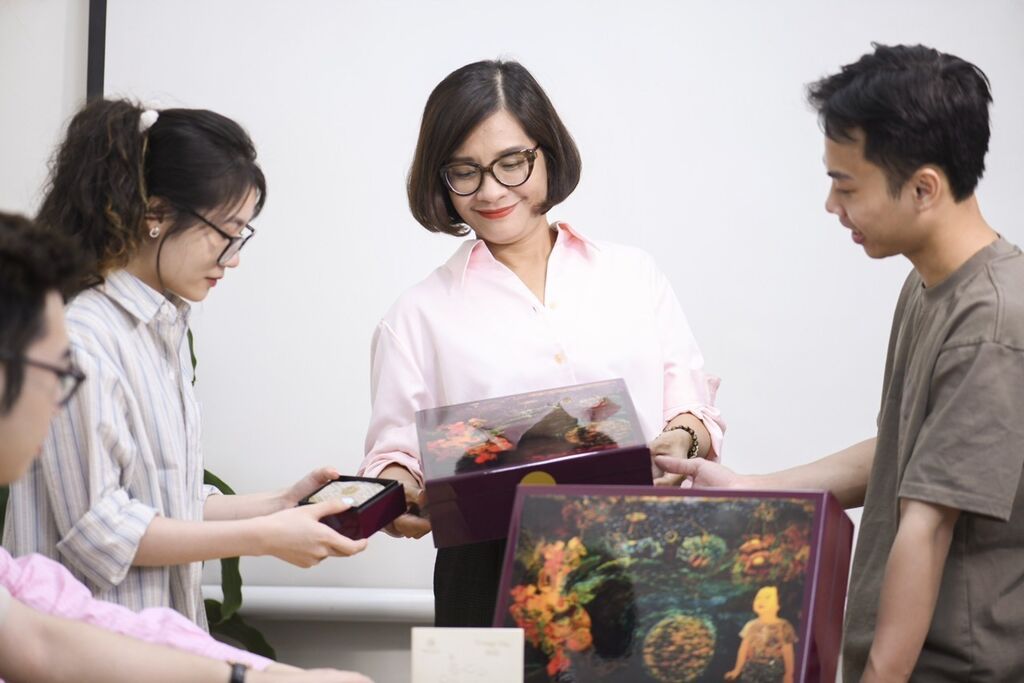 En s'inspirant de l'œuvre en laque (son mài en vietnamien) intitulée Cyprins dorés parmi les algues (Ngư tảo en vietnamien), réalisée par le célèbre peintre Nguyên Huyên, issu de l'École des beaux-arts de l'Indochine au début du XXe siècle, les jeunes créateurs de MnS ont reproduit cette peinture sur des boîtes de différentes formes et de différents usages.