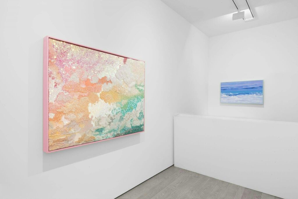 Émerveillée par les descriptions majestueuses des vols de son père à travers les nuages dans son avion, l'artiste a développé une représentation profondément nuancée des nuages : ce à quoi ils peuvent ressembler et ce qu'ils peuvent révéler, mais aussi dissimuler. Saisissant cette dichotomie, les peintures de Tia évoquent un large éventail d'états d'âme, allant de la joie et de l'espoir à la morosité et à l'angoisse.