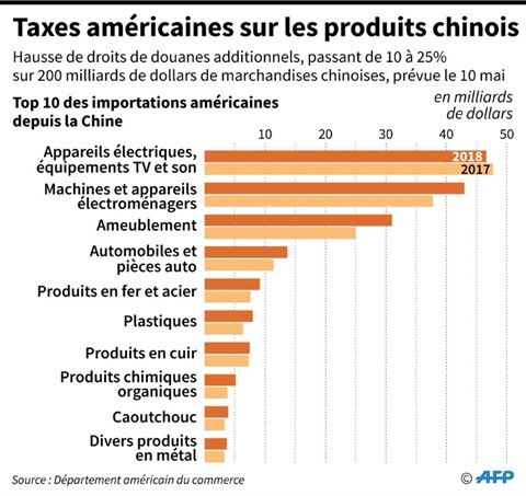 Il est également prêt à imposer des droits de douane additionnels sur toutes les importations chinoises (539,5 milliards de dollars en 2018), faisant craindre pour la croissance économique mondiale et la stabilité des marchés financiers.