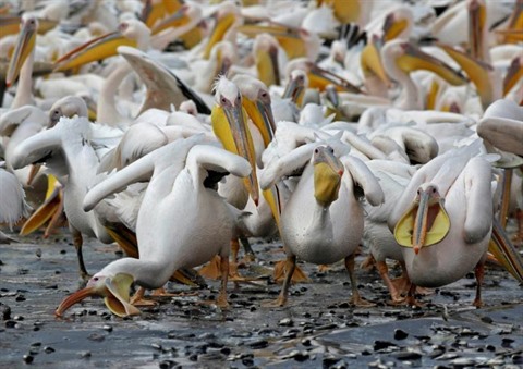 Pour tenter d'empêcher les pélicans de siphonner les poissons des piscines d'élevage, les autorités ont trouvé il y a quelques années une solution : elles ont commencé à distribuer des petits poissons aux pélicans, loin des piscicultures. Ce jour-là, dans le Nord-Est d'Israël, non loin de la frontière libanaise, un camion-citerne déverse ses eaux remplies de poissons gigotants, aussitôt béquetés par les pélicans, dans un concert de cris et d'extase.