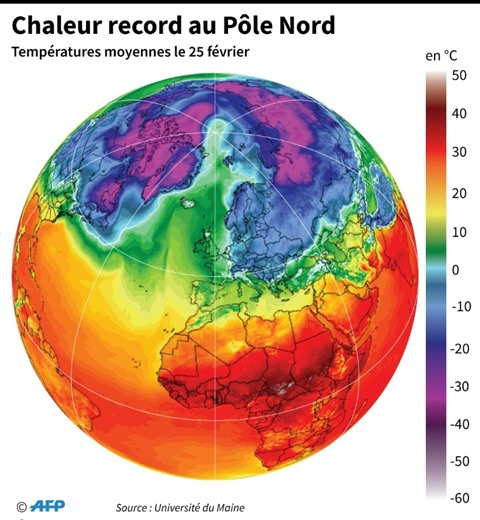 Résultat, "on estime qu'il a fait à peu près zéro degré Celsius au niveau du pôle Nord", a indiqué M. Kapikian, selon les estimations obtenues par modélisation, car aucune station météorologique n'est implantée dans cette zone.