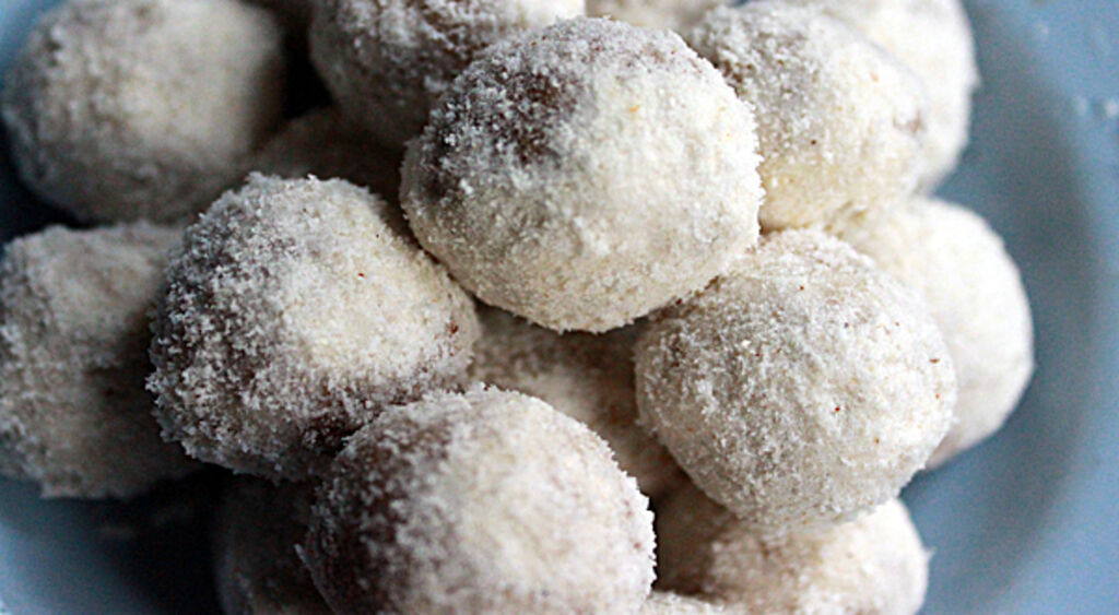 Pour la cuisson, on fait chauffer de la graisse de porc dans une poêle, puis on y dépose les gâteaux. On les fait cuire jusqu'à ce qu'ils prennent une teinte jaune, puis on les retire et on les laisse s'égoutter pour se débarrasser de l'excès de gras. Les gâteaux sont ensuite plongés dans du sucre de canne puis enrobés avec de la farine cuite.