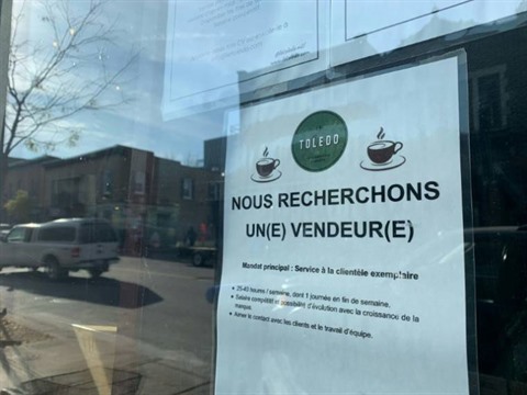 De son côté, Eric Igari a tout tenté : faire appel à des amis et même à des clients réguliers pour combler les trous dans le tableau de service de son restaurant mexicain, Corazon de Maiz, à Ottawa. Sur sa devanture, comme devant beaucoup de commerces dans la capitale canadienne ou à Montréal, une affiche vante : "ici on embauche". "C'est très difficile", explique le restaurateur, pendant que sa femme lave des tomates en cuisine. Tous deux ont les traits tirés.