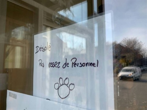 | Une affiche sur la porte du restaurant La Panthere Verte à Montréal le 11 novembre. |