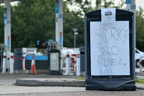 Partout à travers le pays, les panneaux "plus d'essence" ou "hors service" se multiplient près des pompes à essence, avec notamment environ 30% des stations du géant BP touchées par des pénuries de carburant.
