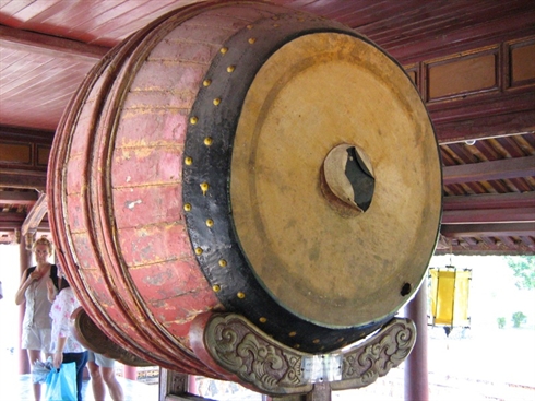 Car, énorme, le tambour vietnamien peut l’être ! Il n’est que d’aller rendre visite à quelques palais, pagodes ou monastères pour tomber nez à caisse, avec de monstrueux tambours suspendus à des portiques. Souvent associés à de non moins imposantes cloches de bronze, ces tambours servaient à annoncer les bonnes ou les mauvaises nouvelles, avant l’invention du téléphone ou de la radio.