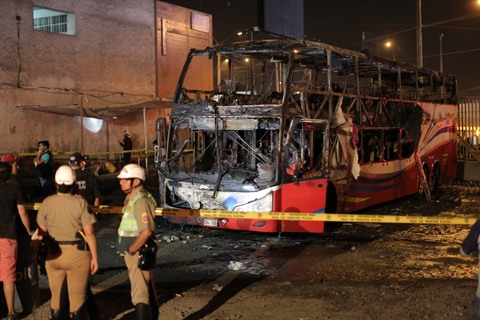 "L'incendie a entraîné la mort d'au moins vingt personnes", a déclaré un responsable des pompiers, Lewis Mejia. Selon les premières constatations, le feu a pour origine un dysfonctionnement électrique à l'arrière de l'autobus. Celui-ci s'apprêtait à quitter la gare routière de Fiori, dans le quartier de San Martin de Porres au Nord de Lima, à destination de la ville de Chiclayo, dans le Nord du Pérou.