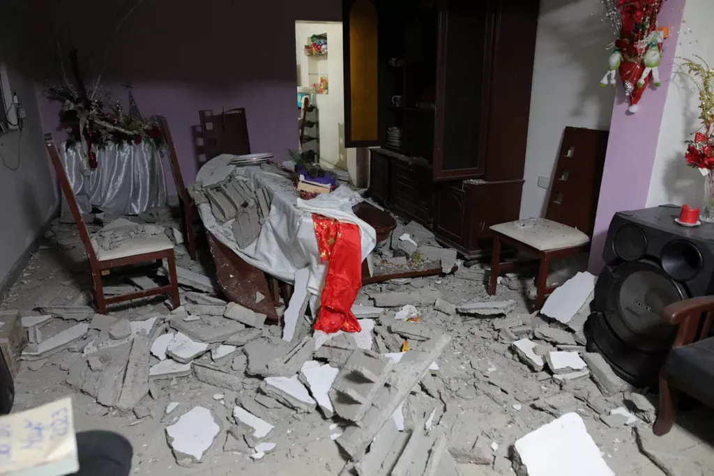 | Des débris gisent dans la salle à manger d’une maison endommagée après un tremblement de terre à Chimbote, au Pérou, le 28 décembre 2025. |