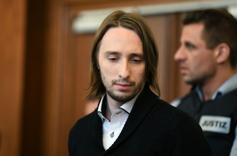 | Sergueï Wenergol, un Allemand venu de Russie à l'âge de 13 ans, accusé d'un attentat contre un autocar de l'équipe de football du Borussia Dortmund en avril 2017, pendant son procès à Dortmund, le 25 avril. |