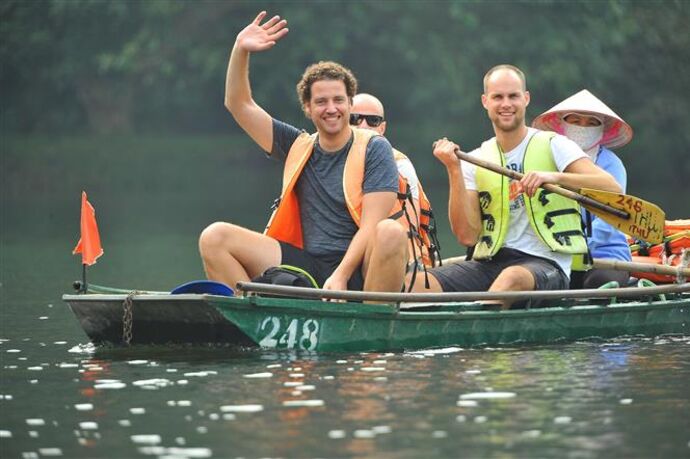 | Les visiteurs au complexe paysager de Trang An., province de Ninh Binh. |