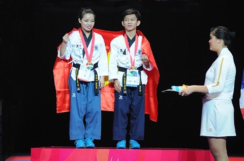 | Aux 28es Jeux sportifs d’Asie du Sud-Est, Nguyên Minh Van et Nguyên Minh Tu ont remporté la médaille d’or en poumsé (mixte). |