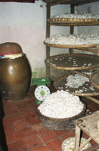 Les villages qui dévident la soie achètent les cocons aux sériciculteurs et revendent les produits semi-ouvrés aux villages filateurs, qui eux laissent à un quatrième groupe le soin du tissage.
