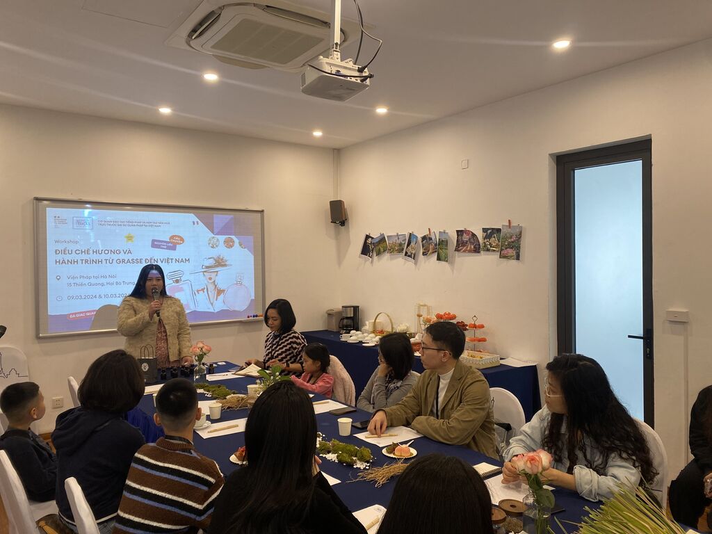 L’atelier était animé par la parfumeuse Viviane Trinh, de son vrai nom Trinh Tuê Vân, membre de la Fondation internationale du parfum (International perfume foundation). Cet événement a permis aux participants de mieux comprendre en quoi consiste le métier de parfumeur, son travail et son rôle dans l’industrie de la parfumerie.