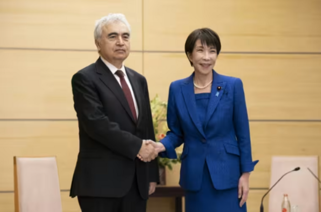 | Le directeur de l'Agence internationale de l'énergie, Fatih Birol, et la Première ministre japonaise Sanae Takaichi avant une réunion à Tokyo le 25 mars. |
