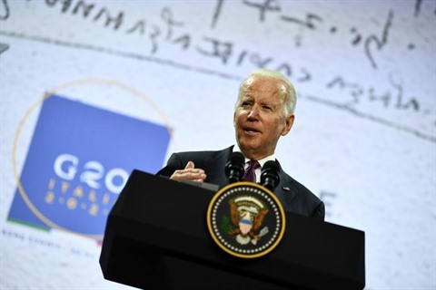 | Le président des États-Unis, Joe Biden, lors d'une conférence de presse à la fin du sommet du G20 le 31 octobre à Rome. |