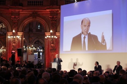 | Le ministre français de l'Économie, Pierre Moscovici (debout), au forum économique entre la France et l'Arabie saoudite, le 11 avril à Paris. Photo : AFP/VNA/CVN |