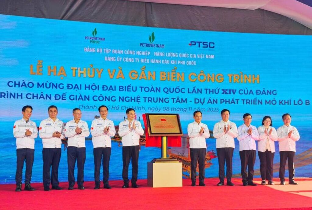 L’apposition de la plaque commémorative sur la structure de base de la plate-forme de traitement central (CPP) du Bloc B constitue une reconnaissance des efforts du Petrovietnam et ses travailleurs.