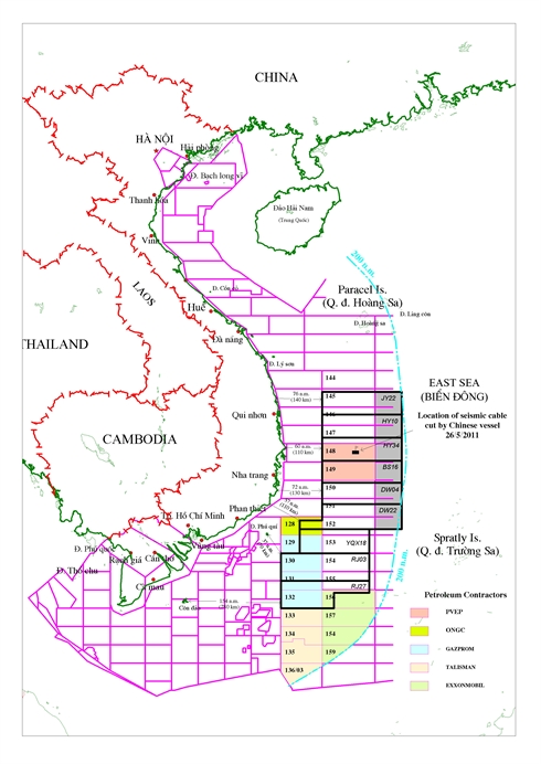 La CNOOC a lancé le 23 juin, a-t-il poursuivi, un appel d'offre international sur neuf lots de pétrole et de gaz sur une superficie totale de 160.129,38 km². Selon les coordonnées géographiques rendues publiques par la Chine, ces lots qui se situent sur le plateau continental du Vietnam, correspondent aux lots Nos 128 à 132, et 145 à 156 où Petrovietnam mène des activités gazo-pétrolières depuis longtemps.