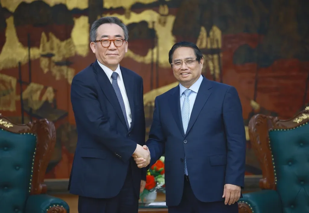 | Le Premier ministre Pham Minh Chinh (droite) et le ministre sud-coréen des Affaires étrangères, Cho Tae-yul. |