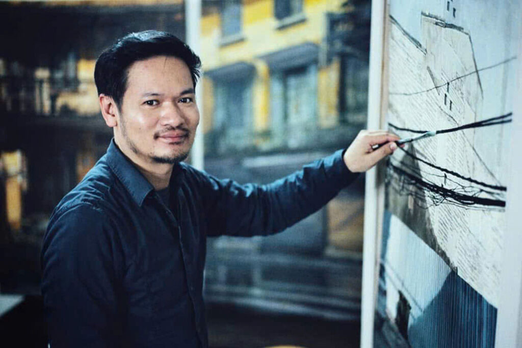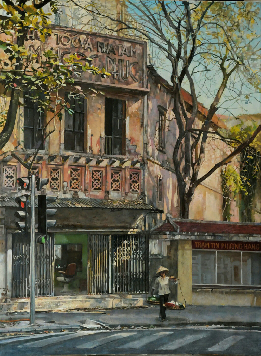 Dans un premier temps, l’artiste s’est concentré sur la représentation de paysages paisibles dans les rues de Hanoï. Il ne peint presque jamais de figures humaines. "Peut-être que je recherche la tranquillité qui correspond à mes émotions", confie-t-il, après s’être longtemps consacré au réalisme.