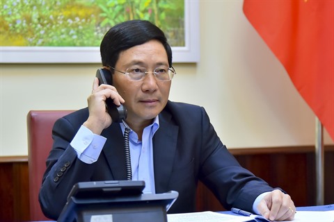 | Le vice-Premier ministre et ministre vietnamien des Affaires étrangères Pham Binh Minh s’est entretenu au téléphone le 31 mars avec le ministre japonais des Affaires étrangères Motegi Toshimitsu. |