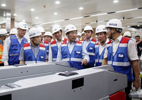 | Le vice-Premier ministre Pham Binh Minh (centre) est allé inspecter les travaux de la ligne 1 du métro de Hô Chi Minh-Ville. |