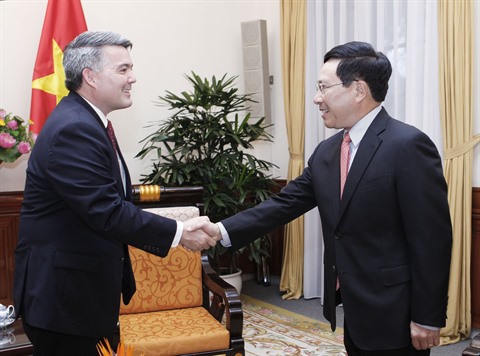 Pham Binh Minh a reçu lundi 28 mai à Hanoï une délégation du sous-comité sur l'Asie de l'Est, le Pacifique et la politique internationale en matière de cybersécurité de la Commission des relations extérieures du Sénat américain, conduite par son président Cory Gardner.