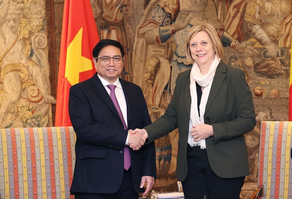 | Le Premier ministre vietnamien Pham Minh Chinh et la présidente de la Chambre des représentants belge Éliane Tillieux. |