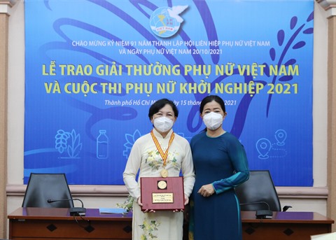 | Pham Thi Ngoc Thao (en blanc) reçoit le Prix des femmes vietnamiennes 2021. |
