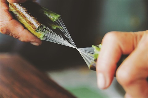 | Phan Thi Thuân montre une écharpe en soie de lotus. |