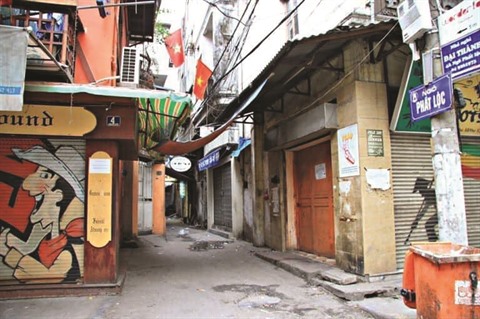 Dans les rues marchandes très exiguës se pressent des maisons dites "nhà ông" (maison-tube) beaucoup plus longues (70 m à 100 m et plus) que larges (3 m à 6 m), pouvant déboucher sur deux rues parallèles. La demeure est divisée (dans le sens de la longueur en plusieurs compartiments non murés (4-5 ou plus) séparés par de petites cours intérieures parfois à ciel ouvert. Comme il n’y a pas de jardin, on met dans les cours des pots de plantes d’ornement ou des montagnes miniatures artificielles. La cour terminale est attenante au compartiment culinaire. La façade sert souvent de boutique. Elle peut être surmontée d’un étage très petit et très bas pour stocker des marchandises ou pour dormir. Le mur de devant de l’étage est percé d’une petite ouverture en guise de fenêtre lorgnant la rue. Le badaud se baladant dans le vieil Hanoï pourrait identifier encore ces étages caractéristiques dans la rue du Marché de Dông Xuân, la rue des Orfèvres, etc. Certains compartiments comportent une mezzanine (entrepôt et chambre à coucher). Mais il faut vite aller admirer ces vieux logis parce que je crains fort qu’ils ne tiennent pas longtemps devant la fièvre des hautes constructions en béton et en verre qu’affectionnent nos nouveaux riches.