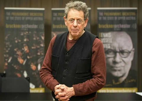 | Le compositeur américain Philip Glass en 2017 à Linz, en Autriche. |