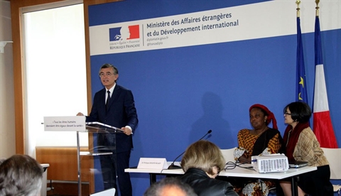 | Philippe Douste-Blazy (debout), lors d'une conférence de presse, le 18 mai à Paris. |