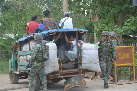 | Des soldats philippins inspectent un véhicule à Indanan (Mindanao, Sud), le 27 février 2017. |