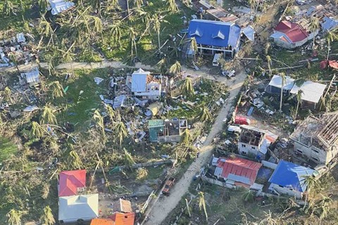 Des photos aériennes partagées par l'armée montraient des dégâts considérables dans la ville de General Luna, où de nombreux surfeurs et vacanciers avaient afflué avant Noël, avec des bâtiments dépourvus de toits et des débris jonchant le sol.