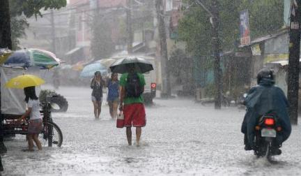 | Une rue de Manille inondée lors du passage du typhon Utor aux Philippines, le 12 août. |