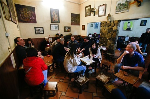 | Vue générale du Café Giang au N°39 rue Nguyên Huu Huân, à Hanoï. |