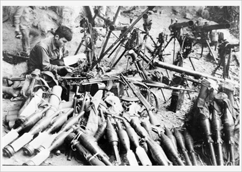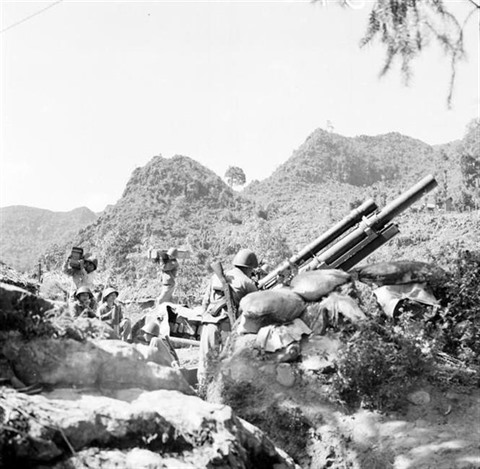 | Des armes ennemies saisies par les forces armées vietnamiennes dans le district de Hoa An, province de Cao Bang, en février 1979. Photo : VNA/CVN |
