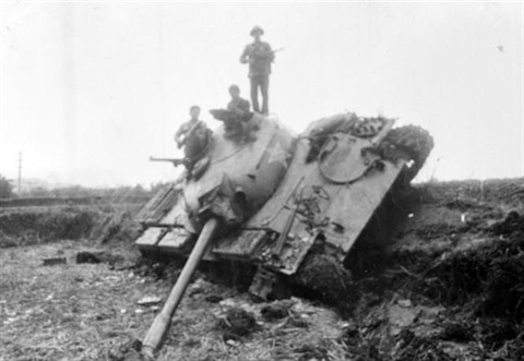 | Les tanks ennemis détruits par les forces armées vietnamiennes à Cao Bang, en 1979. Photo : Manh Thuong/VNA/CVN |